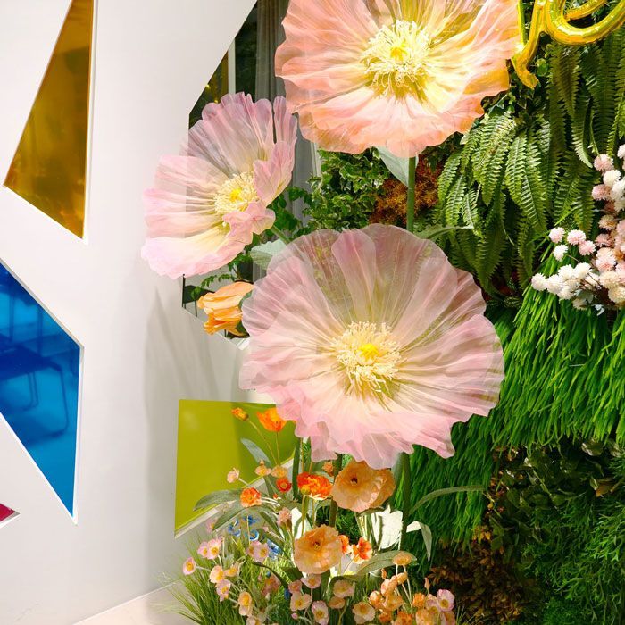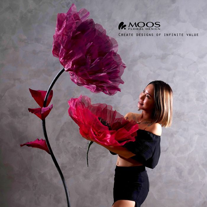 融合紙藝、真絲、EVA、植絨、光纖熱門材質的【巨型花藝課】,結合互動開合花、全發亮花等特殊效果的實作課程。