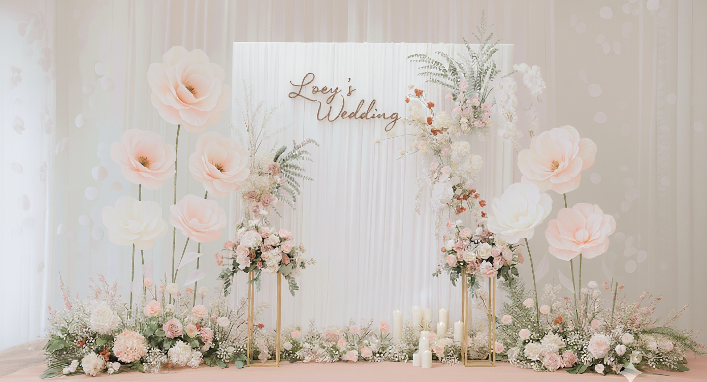 巨型花的角色不是為了搶鏡頭,而是透過精準的比例與留白,幫新人搭好舞台。它不會蓋過主角,卻能讓空間更有記憶點,讓婚禮留下美好的回憶。